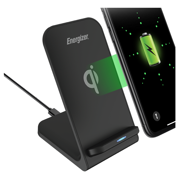 Safe and convenient fast wireless charging up to 10 watts. The Energizer wireless charging stand unclutters your bedroom, office, or living room while simplifying charging—just place your phone onto the stand and go. Qi certified dual coils provide the ability to charge horizontally or vertically.